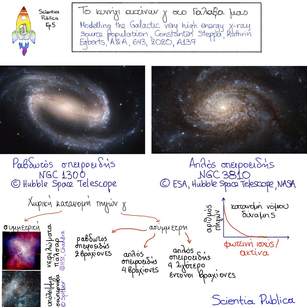 Ακτίνες γάμμα στον Γαλαξία μας! Aκολουθούμε τον Steppa και τους συνεργάτες του στην εξερεύνηση των ιδιοτήτων των νεφελωμάτων πάλσαρ και των υπολειμμάτων σούπερνοβα ως πηγών ακτινοβολίας πολύ υψηλής ενέργειας! Πού βρίσκονται αυτά τα αντικείμενα μέσα στο Milky Way και γιατί καταφέραμε να τα παρατηρήσουμε με το τηλεσκόπιο H.E.S.S.; Ποια άλλα φαινόμενα οδηγούν σε εκπομπή ακτίνων γ και τι ενδιαφέρον παρουσιάζει ο Γαλαξίας μας σε αυτό το μήκος κύματος;